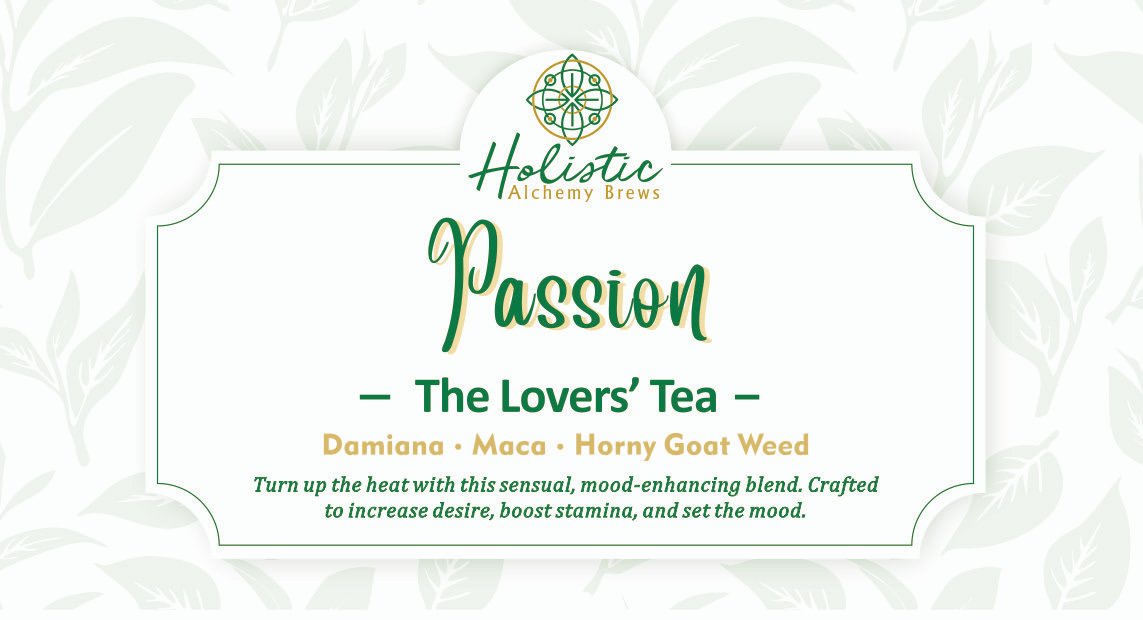 Our herbs are purchased by certified organic distributers. Quality is 100% guaranteed. Our Passion Tea has herbs that Naturally boost sexual stamina for men & women, Horny Goat Weed & Maca root, Damiana, and rose buds.